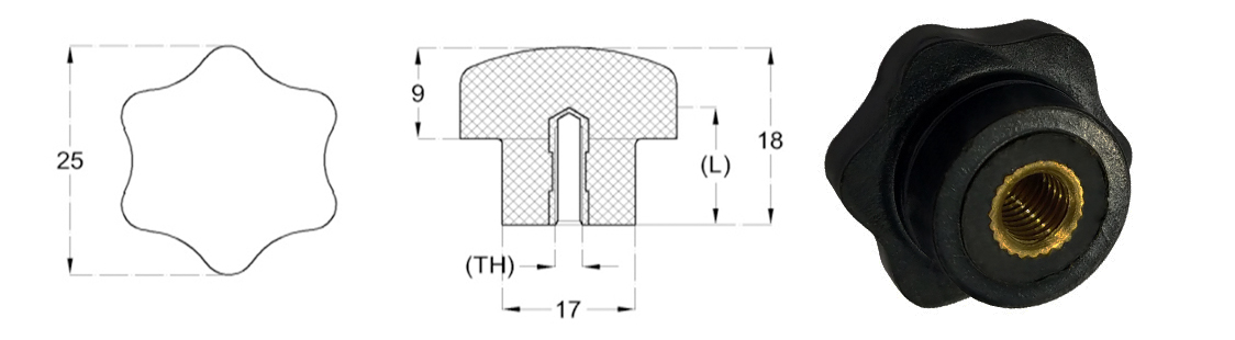 6 Star Knob (Diameter 25 mm) With Brass Insert |