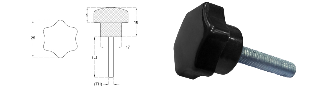 6 Star Knob (Diameter 25 mm) With Pin Insert |